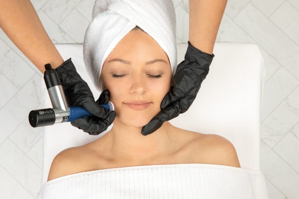 A Procell treatment starts with preparing the treatment area. Your provider will sanitize your skin with an isopropyl alcohol prep pad to ensure that the treatment area is clean and that no foreign bacteria will be introduced to the skin during the microchanneling process.